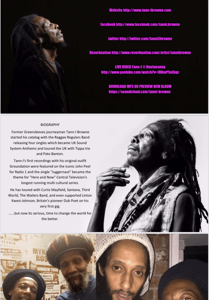UK Reggae Recording Reggae Star: Tann-I Browne latest singles.